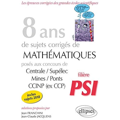 Descriptions 8 ans de sujets corrigs de Mathmatiques poss aux concours CentraleSuplec MinesPonts et CCINP ex CCP filire PSI sujets 2018 inclus Francais: