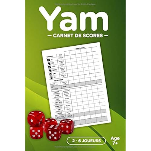Yam Carnet de scores 100 feuilles de points avec rgles du jeu de Yam incluses