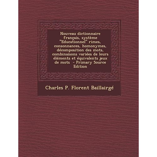 Nouveau Dictionnaire Francais Systeme Educationnel Rimes Consonnances Homonymes Decomposition Des Mots Combinaisons Variees de Leurs Elements Et Equivalents Jeux de Mots